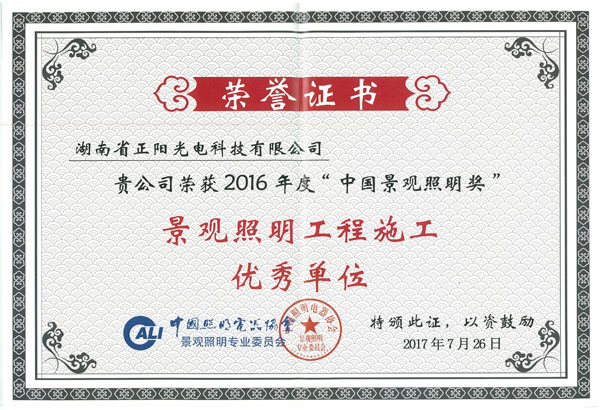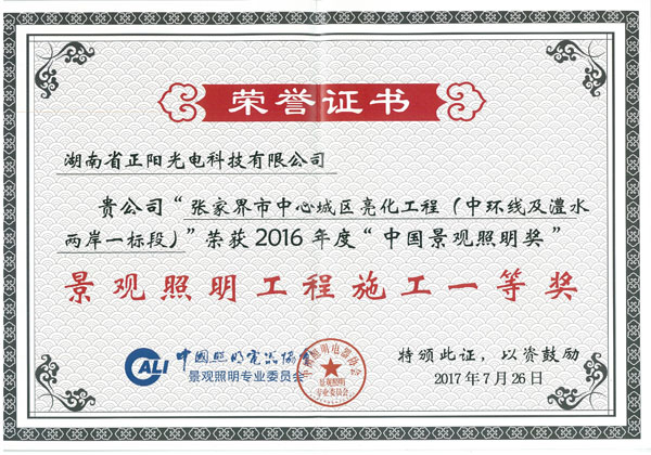 湖南省正陽光電科技有限公司是一家從事亮化工程及大型燈光藝術的設計、制作、安裝和維護于一體的專業(yè)化公司。公司資質齊全、管理嚴謹、技術先進、實力雄厚,取得了城市及道路照明工程專業(yè)承包壹級資質、照明工程設計專項甲級資質、機電工程施工總承包貳級資質、施工勞務等資質、國家高新技術企業(yè)、國家“重質量·守誠信”示范企業(yè)。